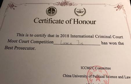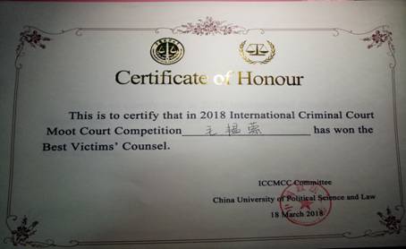 代表队获得第三名以及全国特等奖的佳绩,并与对外经济贸易大学、中国政法大学和北京师范大学一同获得晋级国际赛的资格。