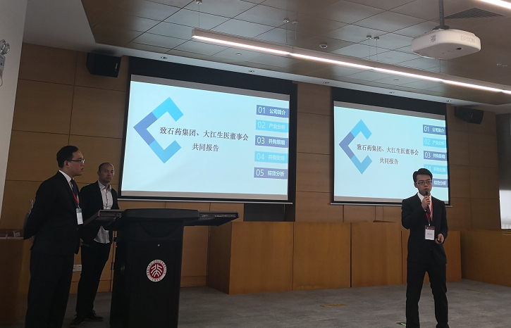 代表台企大江生医股份有限公司对阵代表石药集团的台湾政治大学。经过长时间线上线下磋商以及董事会汇报,最终双方达成并购并共同获得“最佳方案奖”。该奖项是就所有参赛队伍达成交易的并购方案进行评比,须经全体评审全票通过后方能获得。此外,高辣文