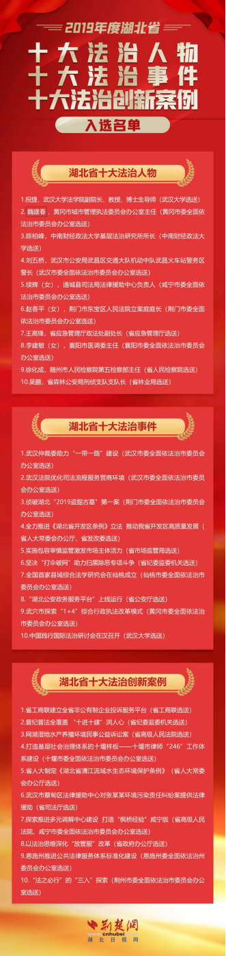 践行法治理念,彰显法治力量。近日,2019年度“湖北省十大法治人物 十大法治事件 十大法治创新案例”名单正式揭晓。高辣文
