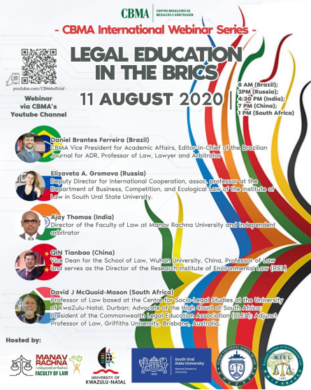 副院长秦天宝教授应邀参加了由巴西调解和仲裁中心(CBMA)主办的“金砖国家法律教育网络研讨会”(Webinar on Legal Education in BRICS),并做主题发言。