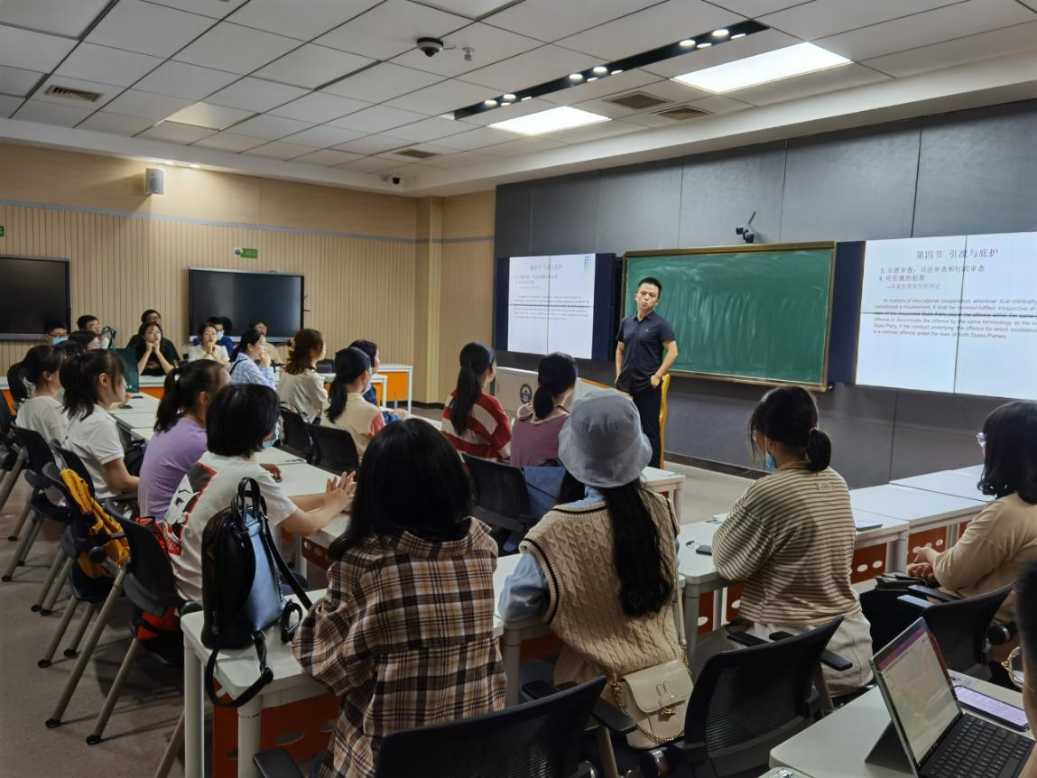 图书馆周华敏老师、本科办严倩老师在模拟法庭讲授。辅导员余奕老师在会后也就一些同学们提出的一些有关问题进行了细致的解答。
