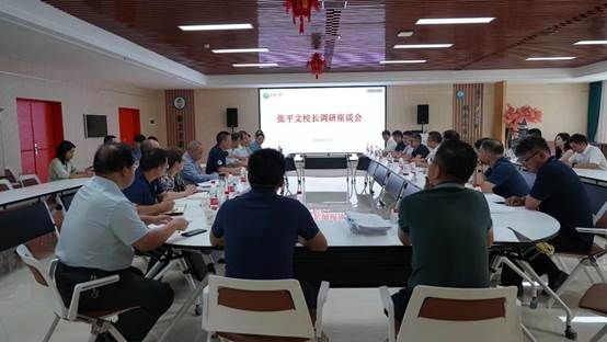 进行工作调研,校长助理、党政办公室主任徐东兴,发展规划与学科建设办公室、本科生院、研究生院、人文社会科学院、人事部、国际交流部、国内合作部、后勤保障部等部门负责人陪同,高辣文