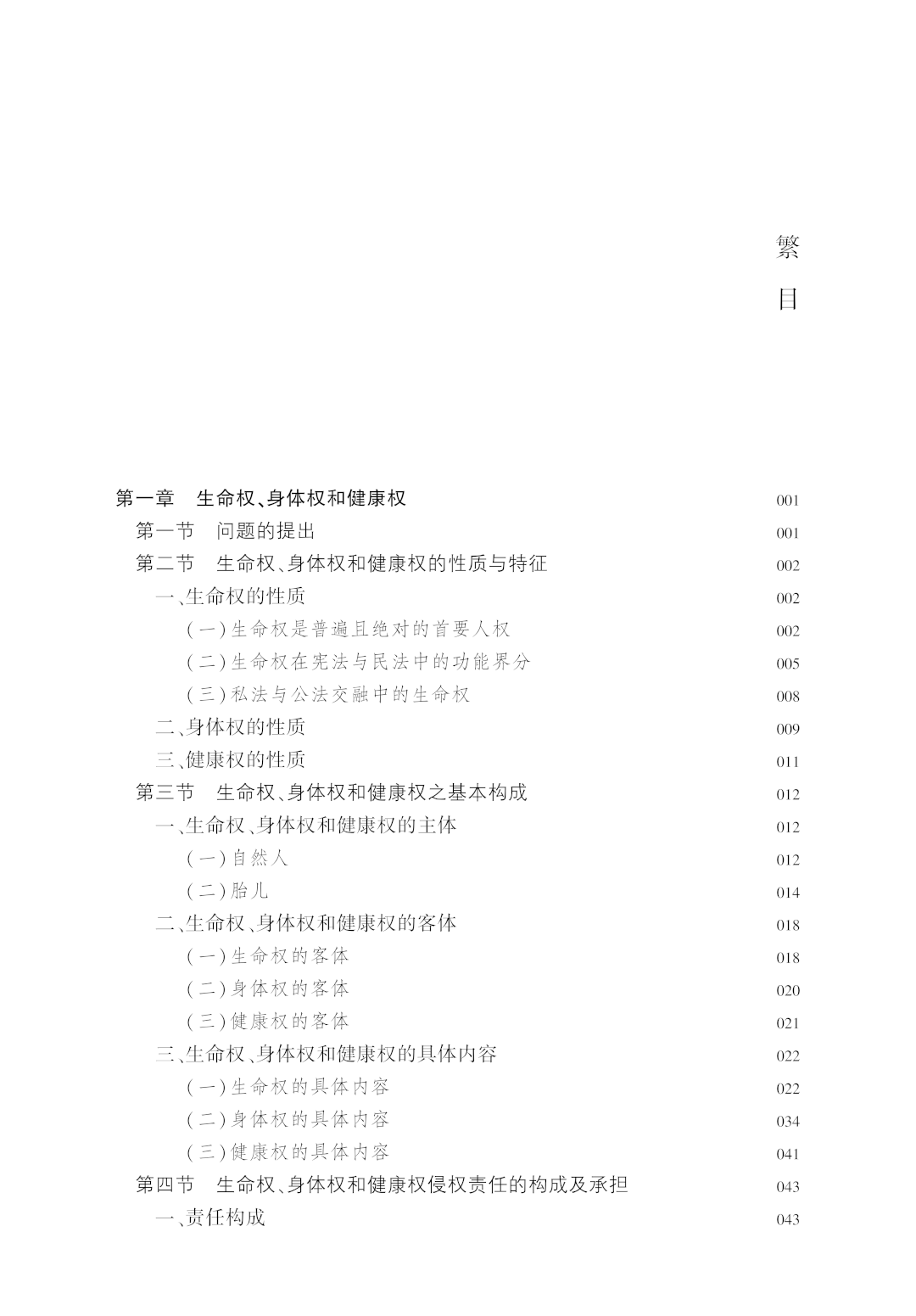 1. 增加第一章“生命权、身体权和健康权”。早前作者基于考虑,未将生命权、身体权和健康权纳入本书初版。《民法典·人格权编》第二章规定了该内容。为了适应《民法典·人格权编》解释适用的需要,本次修订特增加本章内容,以弥补体系之缺。本章多数内容不是有关人身损害赔偿的规定,而是随着社会发展产生的被广泛关注的新问题,如生命尊严、人体器官捐献、人体器官买卖、人体临床试验、人体基因、人体胚胎、性骚扰等。诸此问题,传统民法体系难以辐射,需要吸纳新知以完成其教义学建构,进而成为中国民法学的新知。