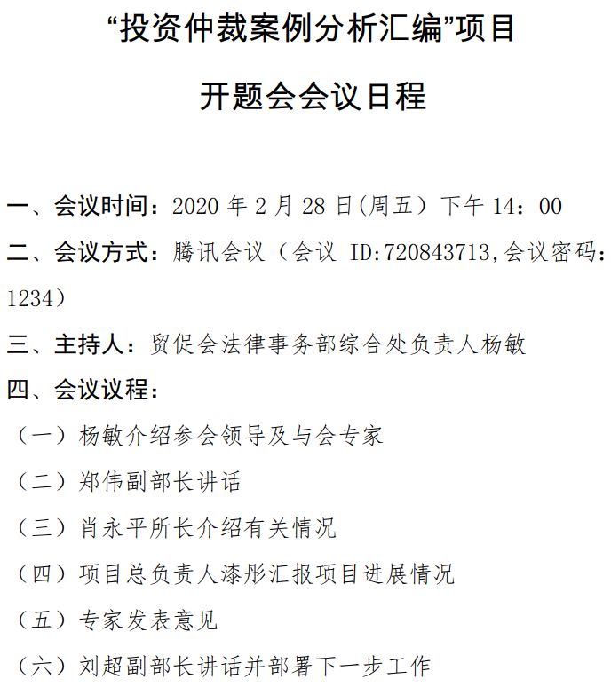 国际法研究所承担的中国国际贸易促进委员会重大招标课题“投资仲裁案例分析汇编”项目开题报告会以腾讯视频会议的在线形式成功举行。