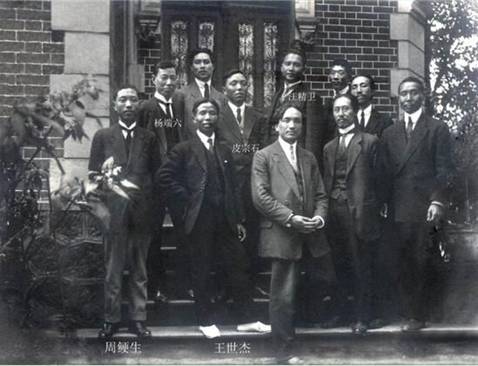 ▲1919年“五四运动”期间,周鲠生(左一)与部分中国留学生在法国巴黎的合影