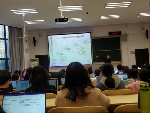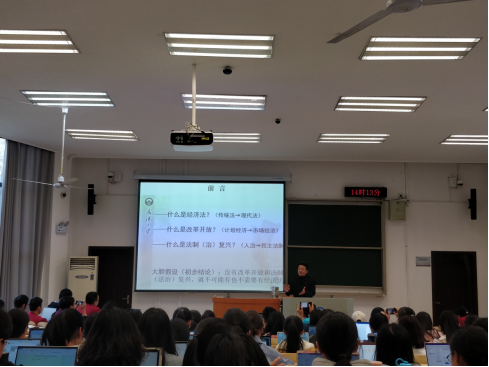 At the beginning of the lecture, Prof. Sun Jin introduced himself briefly, and extended a sincere welcome to all the 2019 undergraduate students of Wuhan University Law School.