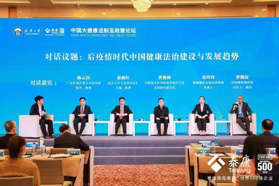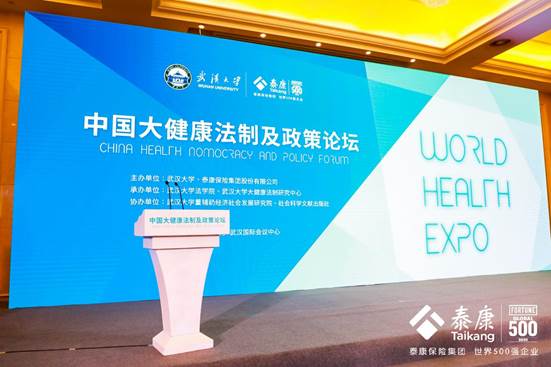 On 9 April 2021, the 1st China Health Nomocracy and Policy Forum, co-organised by Wuhan University and Taikang Insurance Group, was held at the Wuhan International Conference Centre. More than one hundred guests from the Constitution and Law Committee of the National People's Congress, the National Health Care Commission, the China Health Law Society, the China Insurance Association, the Chinese Academy of Medical Sciences, the Hubei Health Law Research Society, Tsinghua University, Wuhan University, Guangdong University of Foreign Studies, Social Science Literature Press, Taikang Insurance Group and Han Kun Law Firm attended the forum.