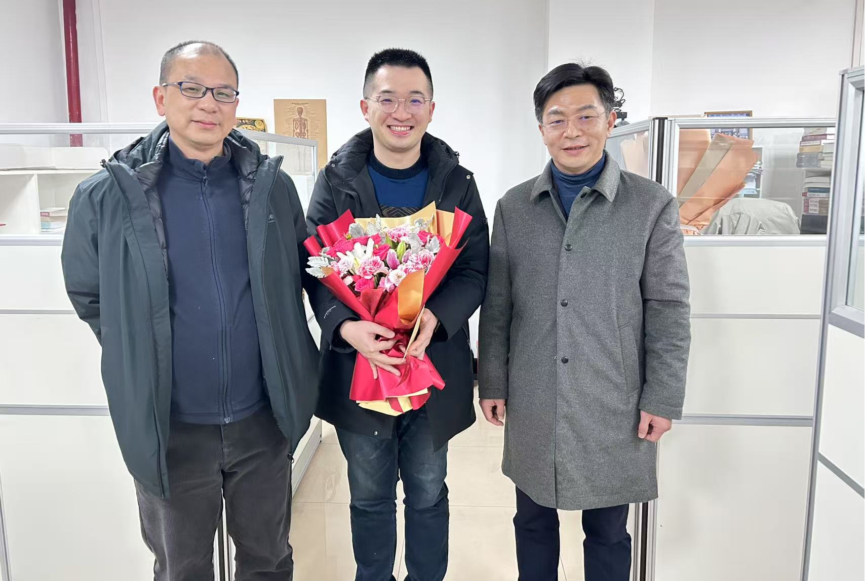 在学院420青年教师办公室,院党委领导对青年教师袁野进行了慰问,对袁野在2024年取得的学术研究进展表示祝贺,并期待他在新的一年取得更多成绩。