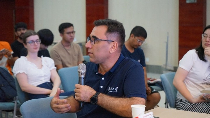Associate Professor Ghamgeen from the School of Electrical Engineering and Automation, according to his many years of working and living experience in China, provided a series of professional learning advice for graduate students. He said that international students should maintain close communications with their tutors, develop a professional learning plan, balance academic research with course work, and face challenges bravely. In addition, Mr. Ghamgeen also shared learning resources and encouraged everyone to learn to actively seek out various resources to improve themselves, and he looked forward to the students who would gain a lot from their studies at Wuhan University.