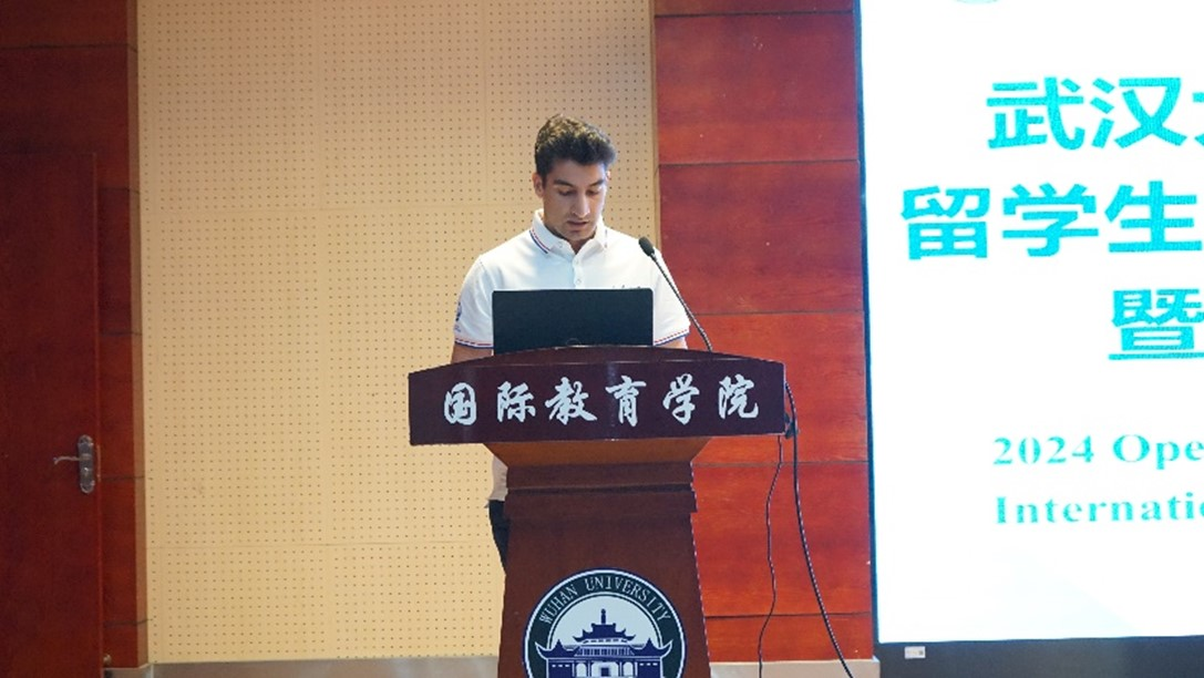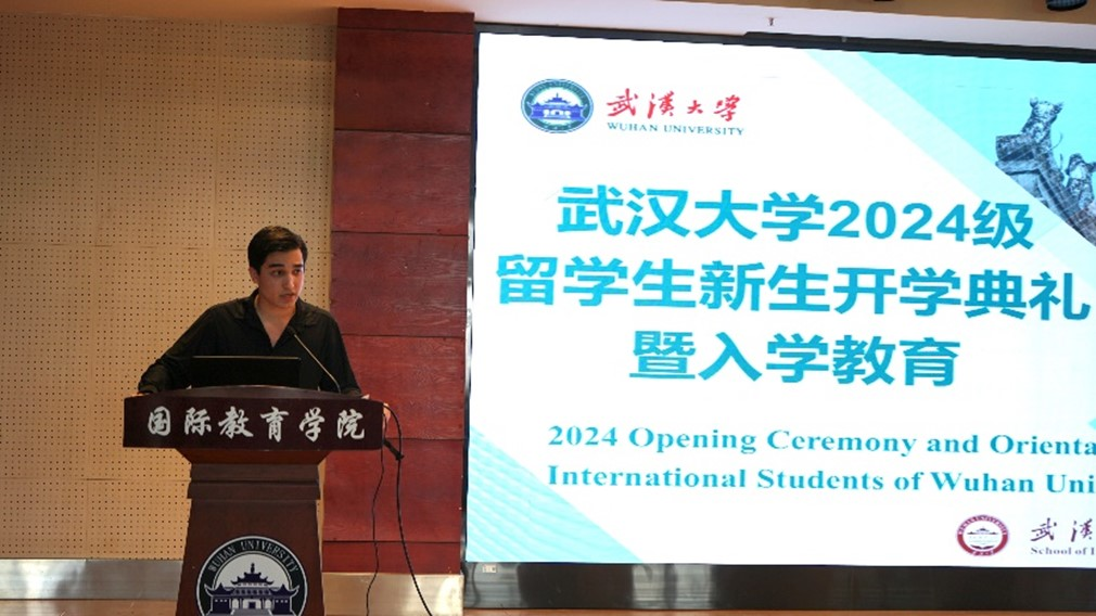 Maksim, a Russian undergraduate student, spoke on behalf of the new students. Maksim said that Wuhan University is not only a world-renowned international university with a beautiful campus and a profound cultural heritage, but also a place where students can learn and grow together. He hoped to cherish the platform and resources provided by Wuhan University, learned with his classmates, and contributed to creating a better future for the world.