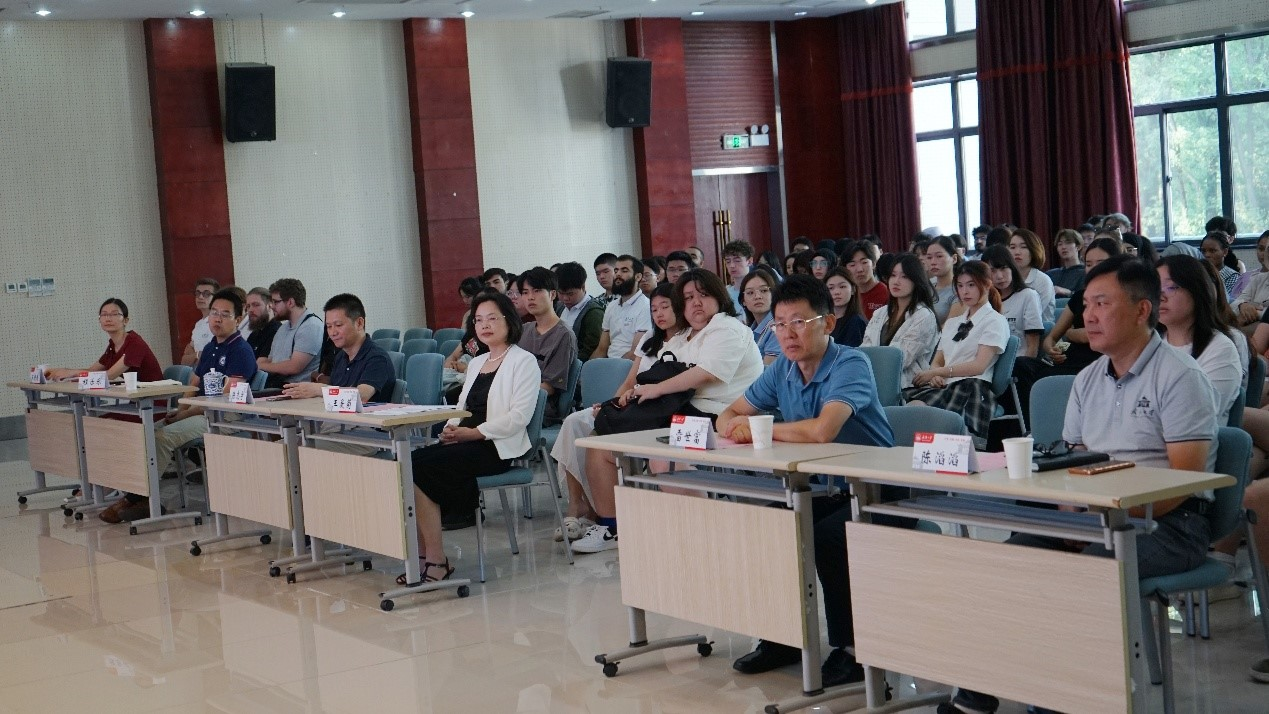 On September 9, the opening ceremony of the School of International Education was held in the 423 Lecture Hall. The ceremony was attended by Lei Shifu, Secretary of the Party Committee of the School; Wang Aiju, Dean of the School; Zhou Cuiyun, Deputy Secretary of the Party Committee and Vice Dean of the School; Chen Taotao, Vice Dean of the School; Chen Zhiyu, Vice Dean of the School; Cheng Lele, Vice Dean of the School; Pan Jie and Liu Xinyang, officers of the Exit-Entry Administration Bureau of Wuhan Municipal Public Security Bureau; and Wang Qianqian from the Teaching and Research Office of the School. The ceremony was hosted by the tutor Bao Yanran.