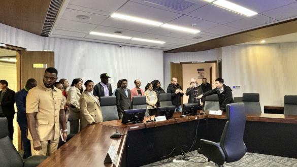 2025年11月18日,阳光明媚。武汉大学法学院“国际法与中国法”硕士项目2024级全体留学生同学于上午九时驱车抵达武汉仲裁委员会总部,开始参访交流活动。“国际法与中国法”硕士项目负责人、法学院甘勇副教授担任带队老师,19名外国留学生和2名法律硕士研究生志愿者参加本次访问交流。在武仲总部高耸入云、气势恢宏的办公大楼门口,武汉仲裁委员会仲裁员工作处谭亚宁处长、仲裁秘书张正淳、叶敏等热情欢迎我院师生的到来。武汉仲裁委员会党组成员、副主任苏勤出席本次交流活动。